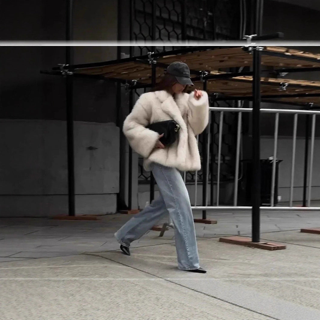 Women's Cozy Fur Jacket in Oversized Style with Wide Lapel